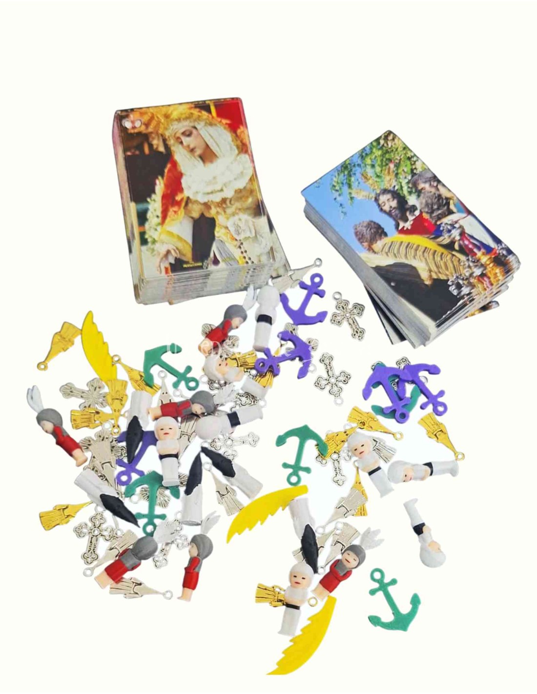 100 estampas a doble cara de tus titulares. Y te regalamos 25 cofraditos mini y 20 medallitas de nazarenos. Producto no apto para menores de 3 años por contener piezas pequeñas. TIEMPO DE PREPARACIÓN: 20 DÍAS